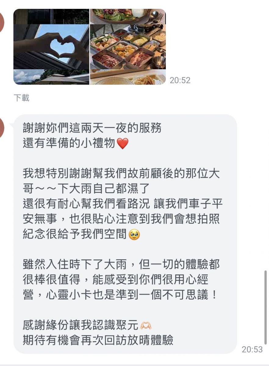 「感謝緣份讓我認識聚元,期待下次回訪晴天的體驗。」